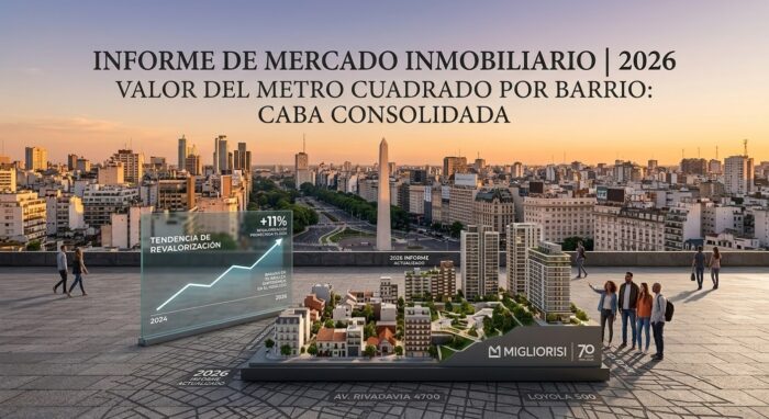 En el marco de nuestro 70° aniversario, desde Migliorisi Propiedades presentamos el relevamiento técnico de valores de vivienda. Este informe es una herramienta clave para propietarios e inversores en un año de plena consolidación para el Real Estate argentino. La empresa cuenta en su staff 7 corredores inmobiliarios , dos abogados, 2 ingenieros en sistemas , 4 profesionales de mas de 30 años de trayectorias que son expertos analistas del mercado inmobiliario y su movimiento. Por eso con conocimiento técnico y de campo comprartimos los estimados de valores que posiblemente observaremos en el valores del metro cuadrado 2026 en CABA.